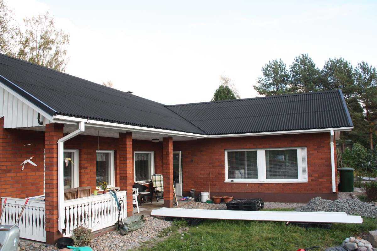Материал черепицы Ондулин Смарт прочный, а цвет не выгорает под солнцем. Работать с ним приятно.